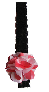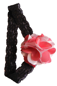 Onpink Satin &pink Sattin flower on Blk Elastic Lace