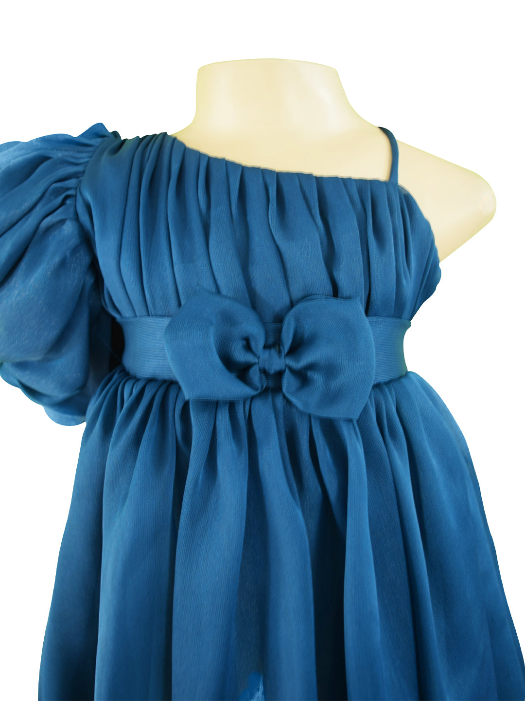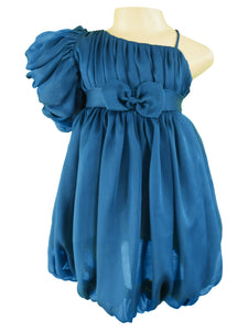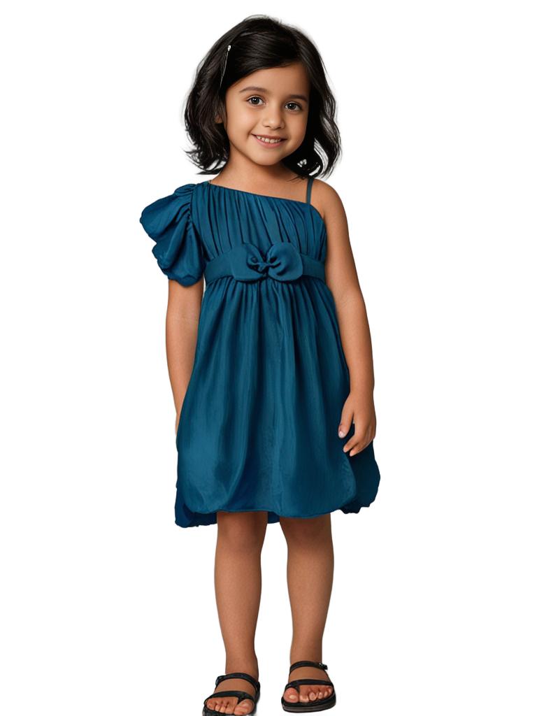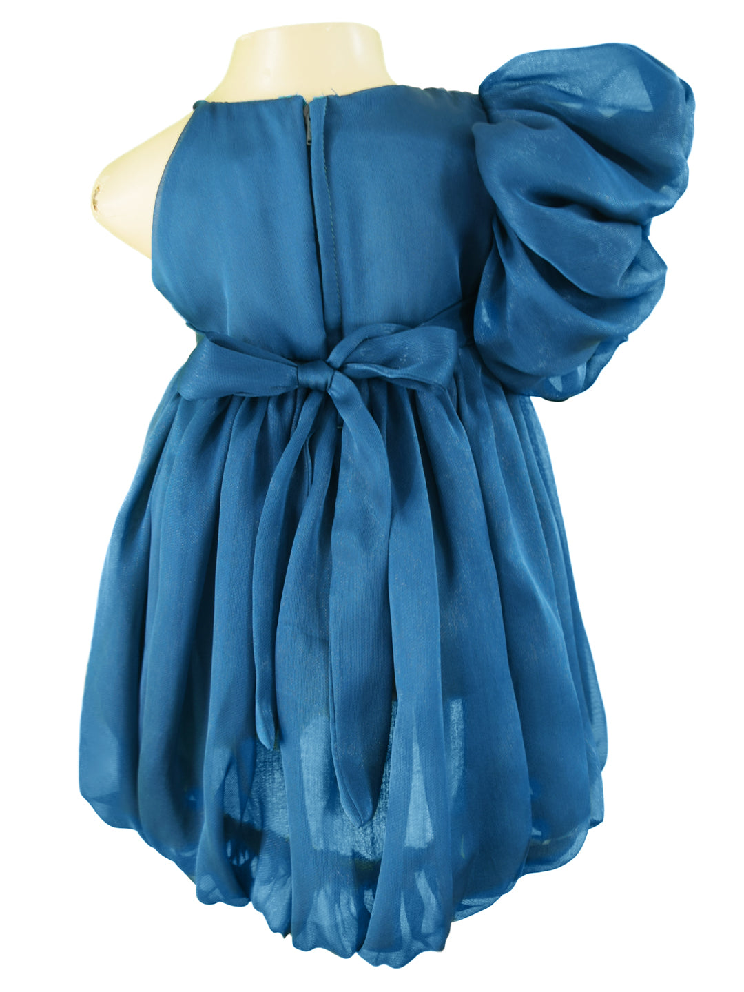 Boasting an exaggerated puff sleeves, this pretty dress is just right for all her party requirements. Made from a sateen fabric, the dress has strap on one shoulder, a band at the waist that can be cinched in and a beautiful balloon hemline.